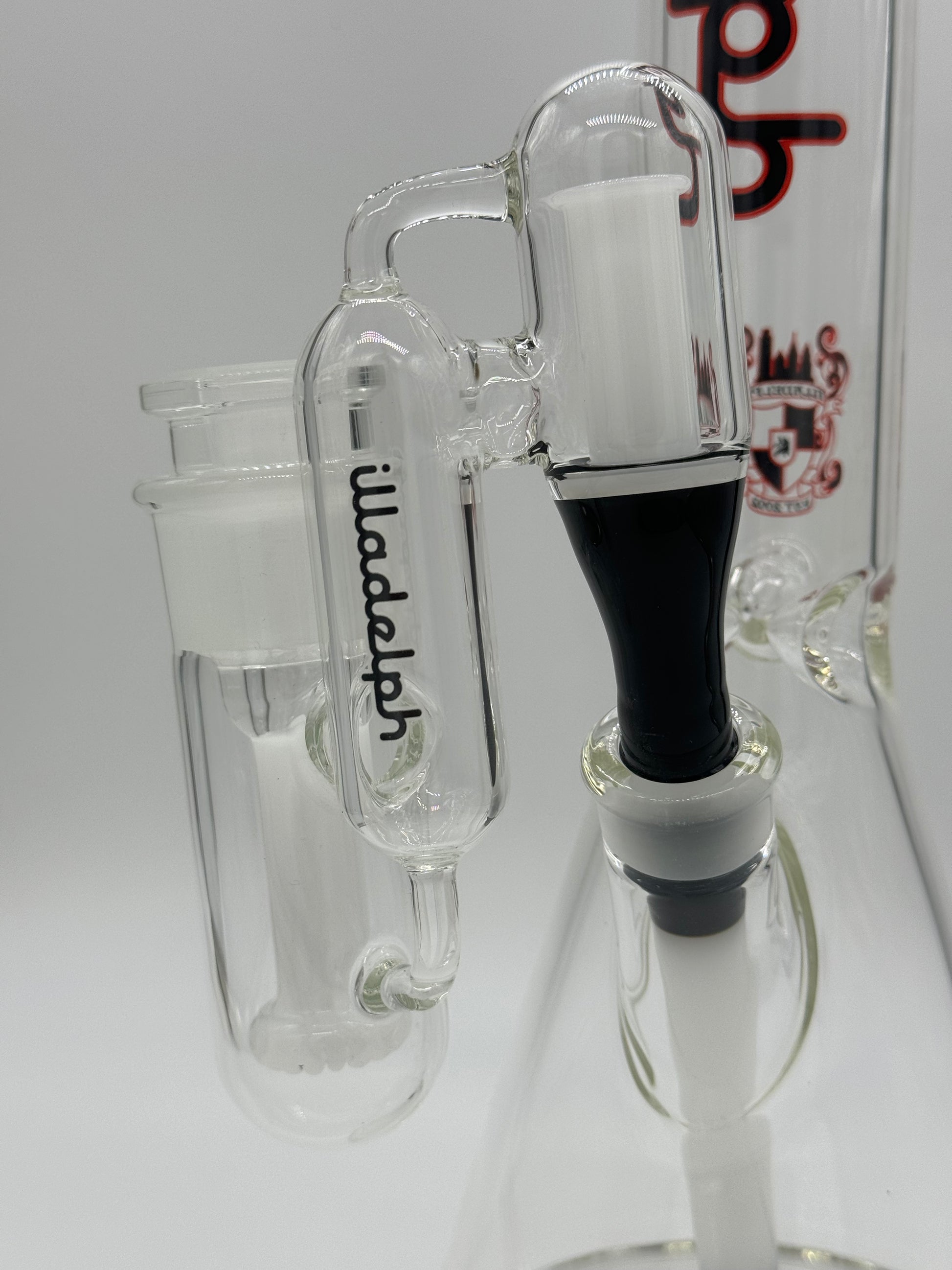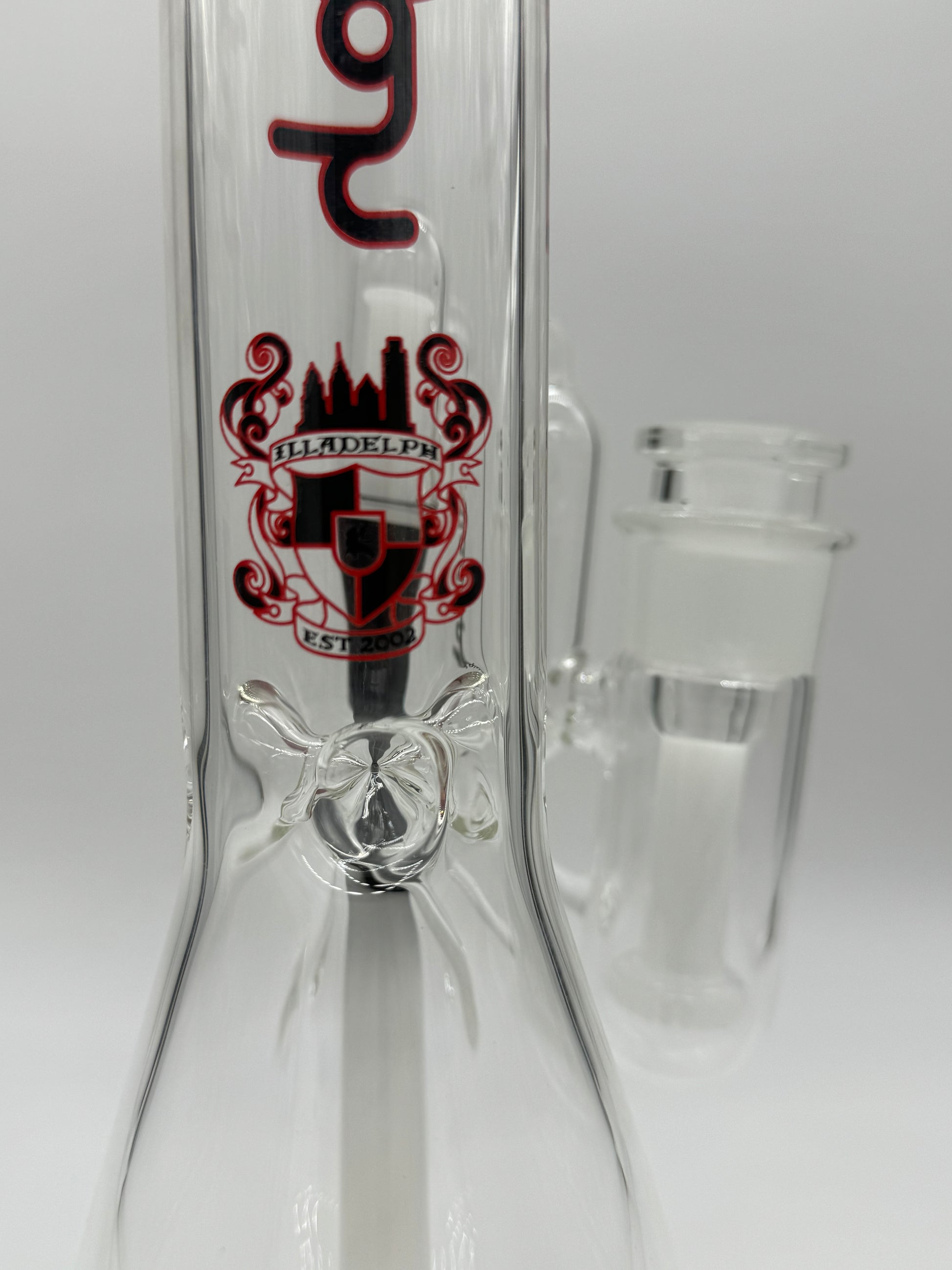 Experience the unmatched quality and style of American Glass with the Illadelph Beaker. With a 5mm thickness and a sleek black and red design, this high end beaker will elevate your smoking experience. Plus, the included disc ash catcher ensures a clean and smooth hit every time. Upgrade your collection with American Glass today!