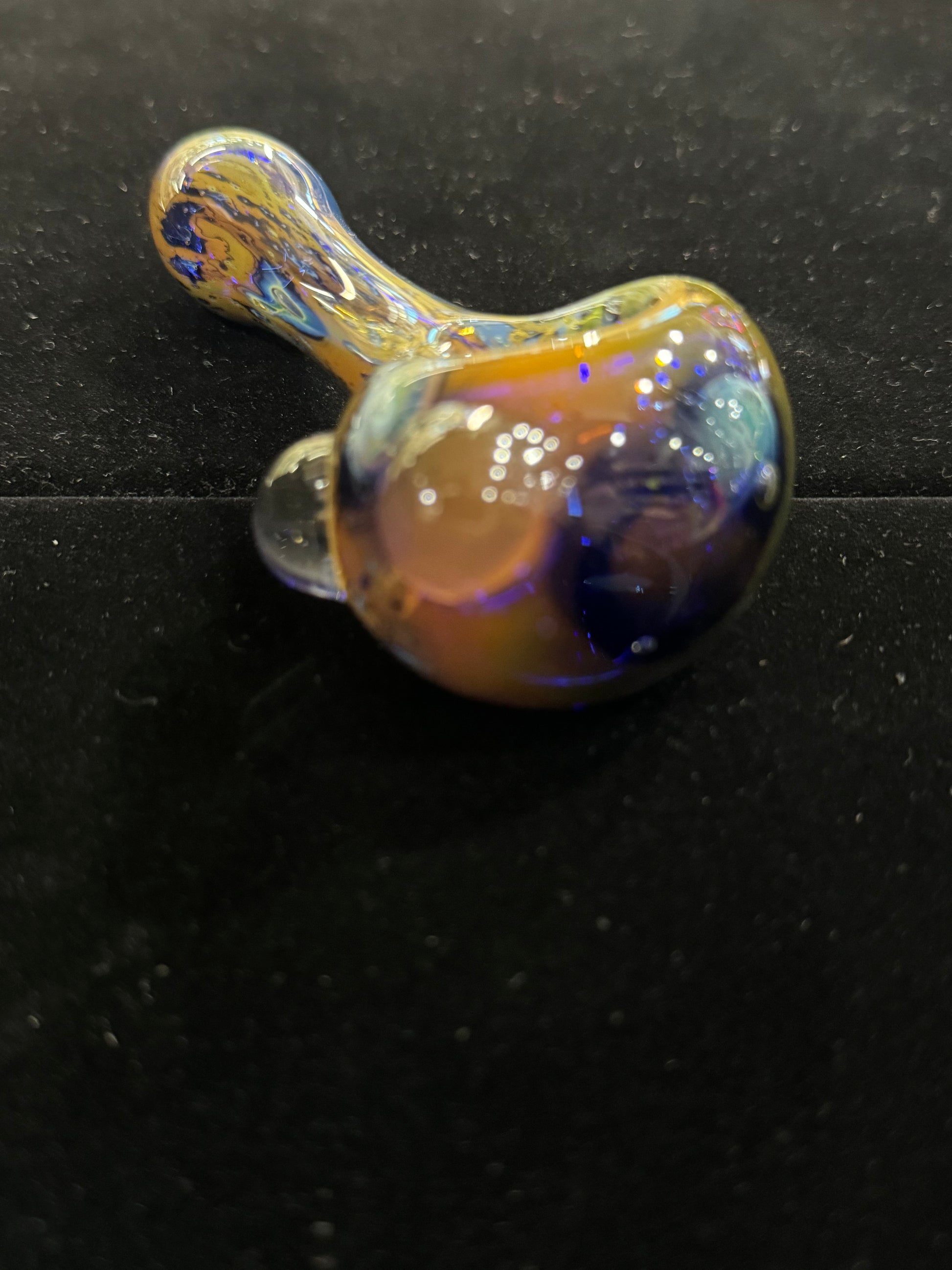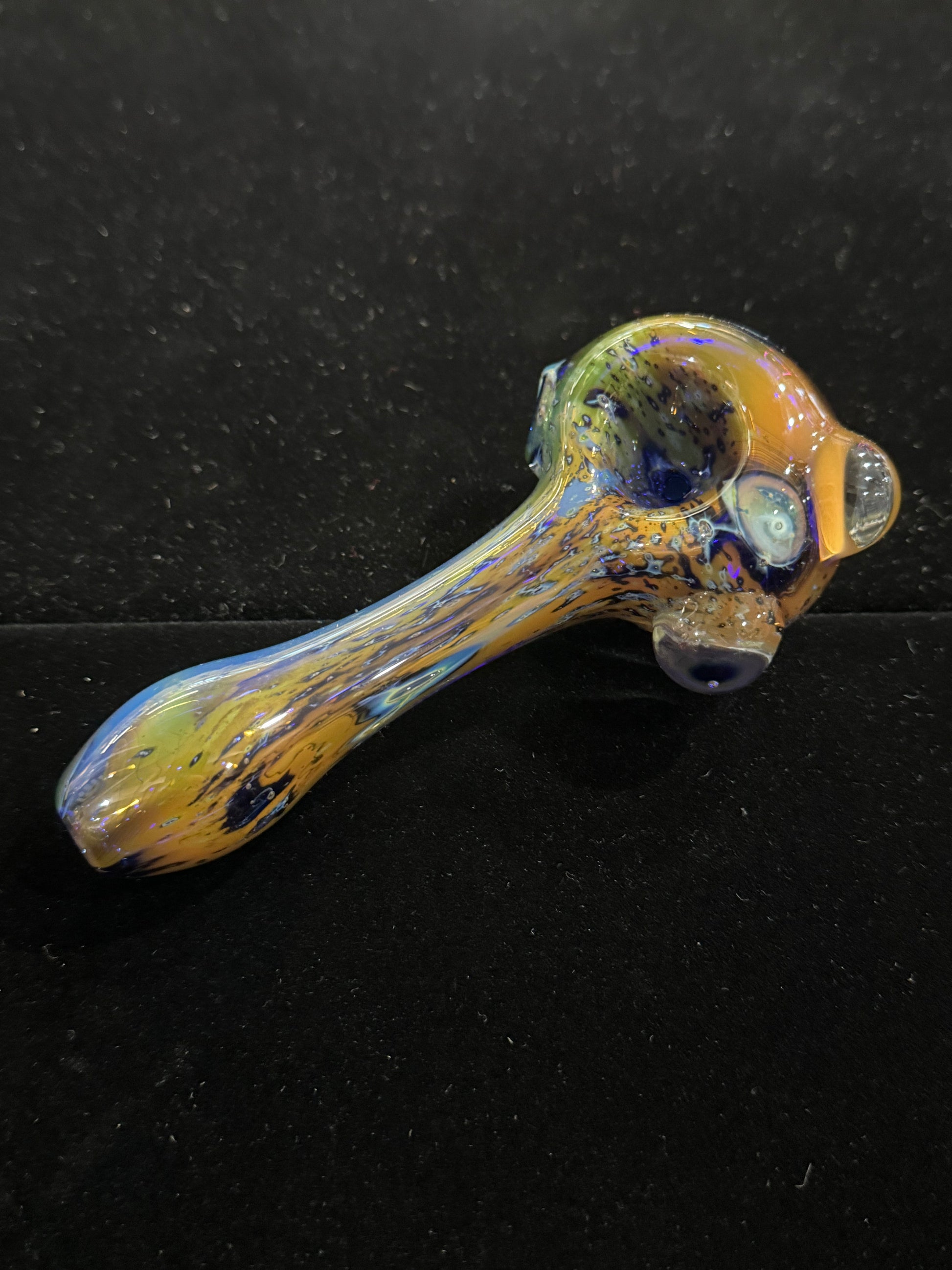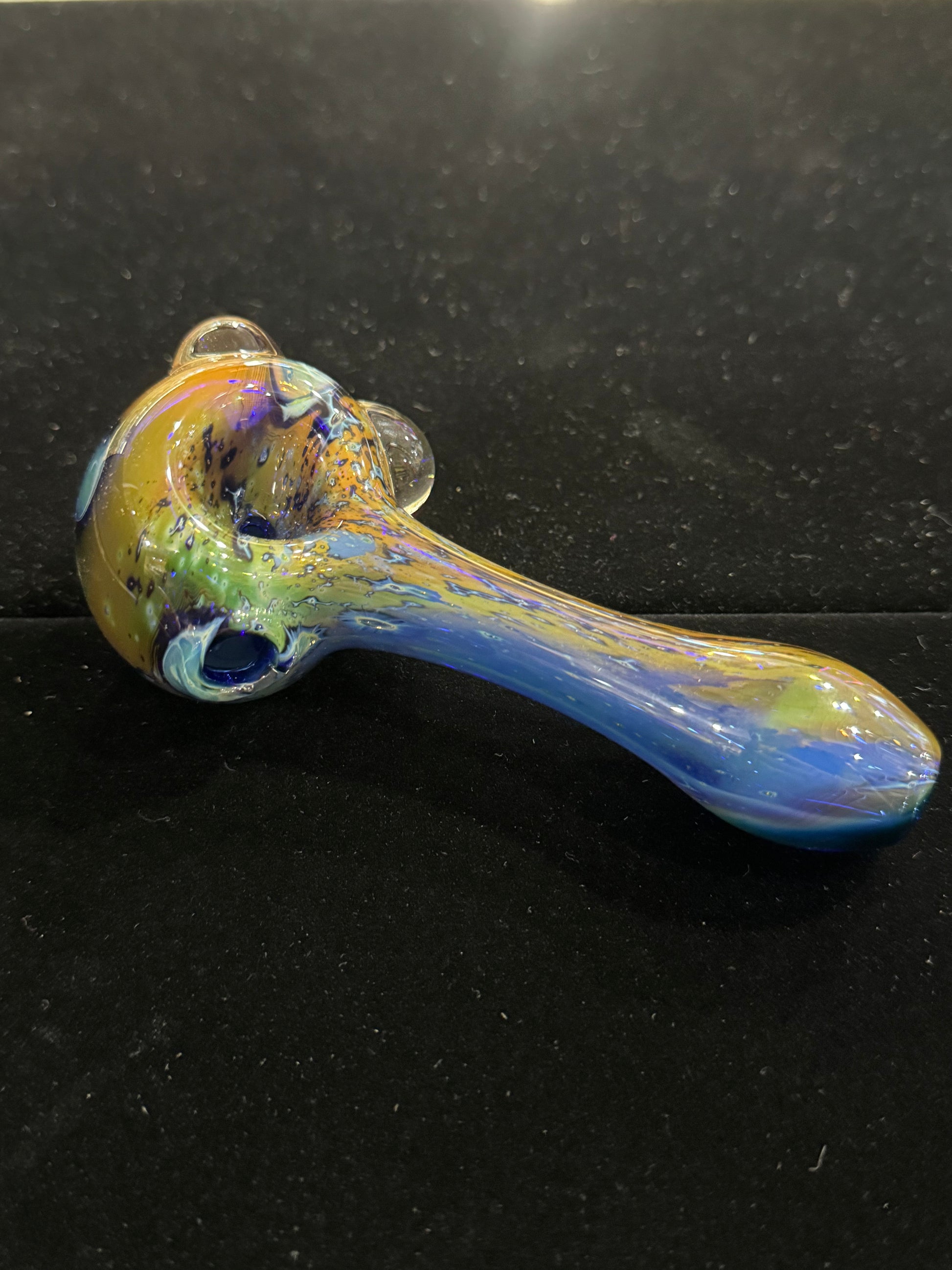 We stock a wide array of American Handpipes to fit everyones budget from $8.00 fumed handpipes to $200 heady handpipes. This one, with vibrant blue, yellow, and green accents, this handpipe is perfect for those who love taking risks. Handcrafted to perfection, the American Handpipe channels the spirit of adventure with every puff.